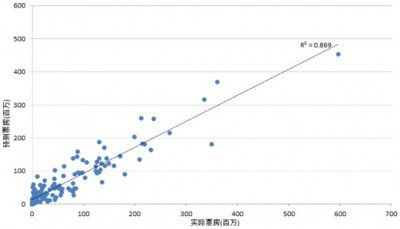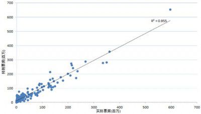 我們選取了2013年1-11月國內上映的180部電影的票房和上映前的搜索量數據作為訓練集,用于訓練一個基礎的線性回歸模型。實驗發現,單純利用搜索量訓練得到的模型,預測得到的首周票房與真實票房的相關度R方值僅為68%,這與Google僅用搜索數據得到的結果70%很接近。(注:R方值取值為0至1,值越大表示模型預測效果越好),這個結果也說明無論在中國還是美國,用戶的搜索行為是很相似的。