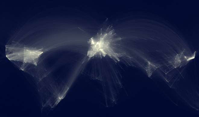 2010年12月,有研究者公布了一份5億Facebook用戶的交友展示圖,受此啟發,研究分析師奧利維爾·博謝納(Olivier?H.?Beauchesne)創作了這個展示國際性合作的可視化圖(如下),時間跨度從2005年到2009年,這份可視化圖為獲獎作品之一。