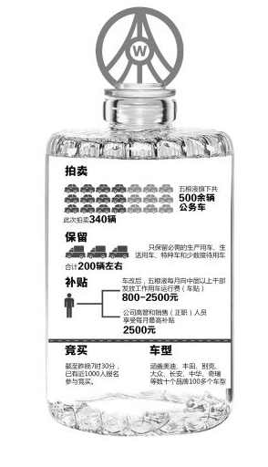 此前有報道稱,“五糧液”拍賣前總計擁有公車500余輛,此番公務車拍賣,只保留必需的生產用車、生活用車、特種車和少數接待用車,合計200輛左右,削減幅度高達63%,從某種程度而言,“五糧液”在公車改革方面,為國企帶了個好頭。