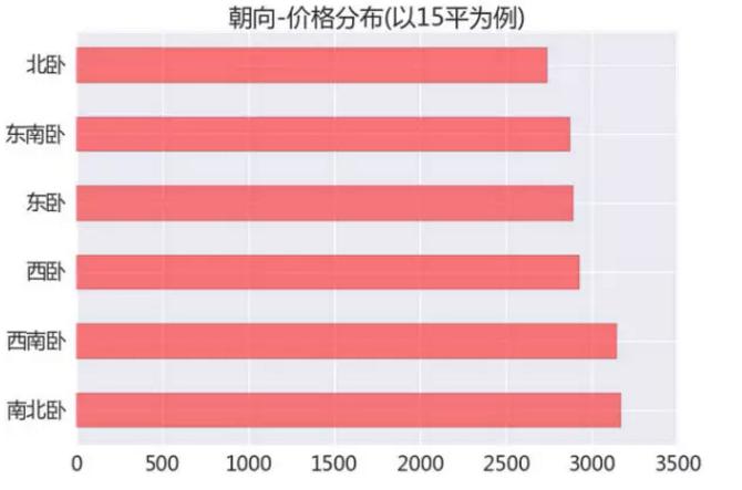 整租時,價格對朝向和樓層都不是很敏感,但單間是很敏感的。先看朝向,顯而易見,因為采光通風較好,南北臥和西南臥是最貴的,相比北臥是最差的,價格差距在400左右。