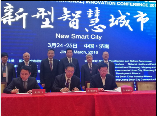 2016年3月24日,“第二屆中國智慧城市(國際)創新大會”在濟南隆重召開。作為此次大會的重要成果之一,在英國對華可持續城鎮化事務特使熊邁克爵士,濟南市委常委、副市長蘇樹偉等領導的見證下,軟通動力信息技術(集團)有限公司(以下簡稱“軟通動力”)、國家發改委城市和小城鎮改革發展中心(以下簡稱“城市中心”)、華為技術有限公司(以下簡稱“華為”)三方簽署戰略合作協議,宣布將聯合成立中國智慧城市及大數據規劃研究院,標志著三方攜手在智慧城市規劃及建設運營領域的合作邁上新臺階。