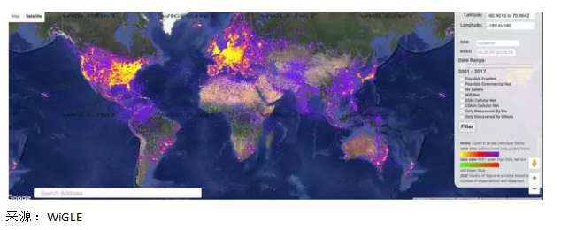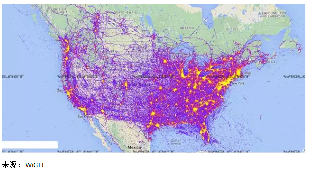 基于超過15萬多名WiGLE用戶通過Wi-Fi網(wǎng)絡(luò)提供的信息,以美國為基站的無線地圖站點得以識別超過2.36億次連接。