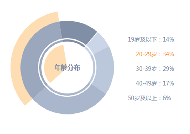 從關注人群的年齡分布來看,20-29歲年齡段關注度最高,比例為34%,其次為30-39歲,占比29%,相對而言,老年群體和19歲以下的關注度較低。此次事件的教師以80后一帶為主,因此他們的遭遇引起同齡人共鳴就不足為奇了。