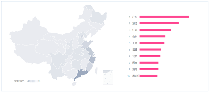 從該事件的地域關注度來看,廣東人民的參與度最高,其次為該事件主人公所在地浙江地區,鄰省江蘇位列第三,山東,上海,福建,北京,河南,湖南,黑龍江分列四到十位。從地域分布特點來看,關注人群主要集中在東部沿海的發達城市,而事件關注度最高的地區為長三角地區,該地區所有城市都排在榜單前五位。同時,華僑眾多的地區廣東,福建,江浙等關注度也較高。從地域特點可以看出,發達地區和僑鄉人民更熱衷于國外旅游購物,他們也更具有高端產品的購買力。