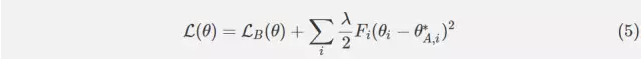 因此,我們可以為我們的網絡在任務 A 上訓練后在任務 B 上再定義一個新的損失函數。讓 LB(θ)僅作為任務 B 的損失。如果我們用 i 索引我們的參數,并且選擇標量λ來影響任務 A 對任務 B 的重要性,則在 EWC 中最小化的函數 L 是: