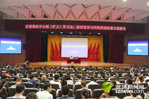 為進一步增強南山區各有關單位新聞發布意識,提高新聞應對及網絡輿情處置引導能力,5月19日下午,南山會堂舉行區委中心組(擴大)學習會,邀請了中山大學傳播與設計學院院長張志安教授,以新聞發布與網絡輿情處置為主題做學習輔導報告。