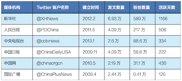 ????我國主要新聞媒體機構Twitter賬戶及運營情況(統計時間:2016年10月8日)
