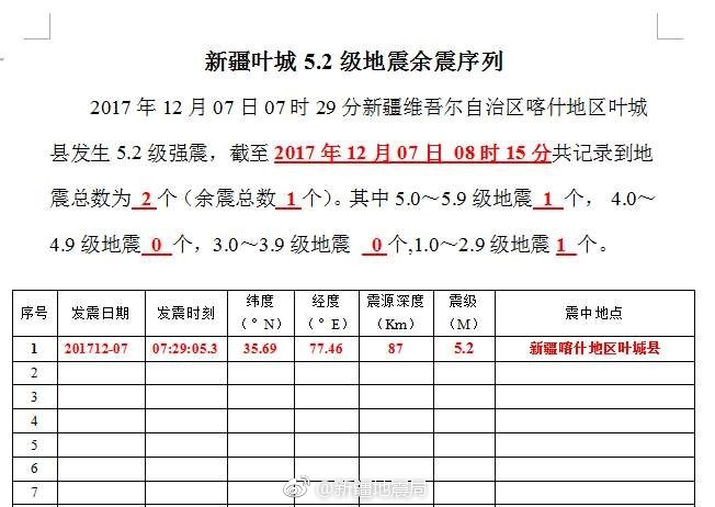 新疆喀什葉城縣發生5.2級地震 震源深度87千米——中國新聞網