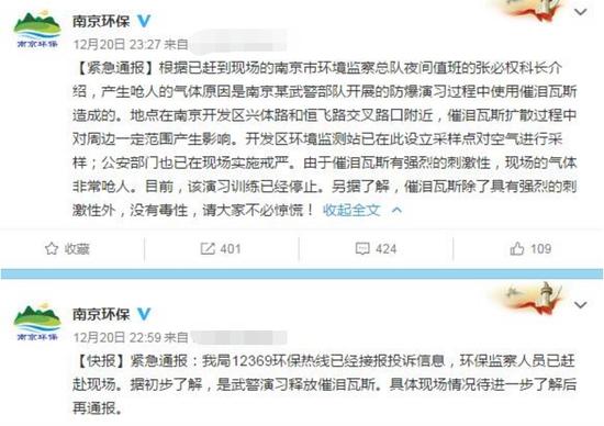 由于一時情況不明,氣體被誤認為是毒氣,引起部分人的恐慌,網(wǎng)友和媒體紛紛關(guān)注。幸而南京環(huán)保及時回應(yīng)是催淚瓦斯并非毒氣,事件才得以控制。