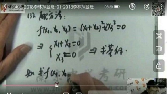 記者注意到,網(wǎng)傳押題視頻“2018李林押題班”共4段,總時(shí)長大約兩三小時(shí),課堂背景帶有“中試考研”機(jī)構(gòu)的字樣。該機(jī)構(gòu)實(shí)體為南京研道教育科技有限公司,注冊資本200萬元。公司法定代表人參股的另兩家教育科技類公司此前曾被吊銷。