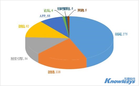 樂思軟件輿情監測數據顯示,截止目前此次輿情采集來源媒體構成類型中,排在采集來源榜前三位的是新聞、微博和搜索引擎。新聞作為重要傳播平臺,數據量達到275條,微博和搜索引擎分別為118和84條。