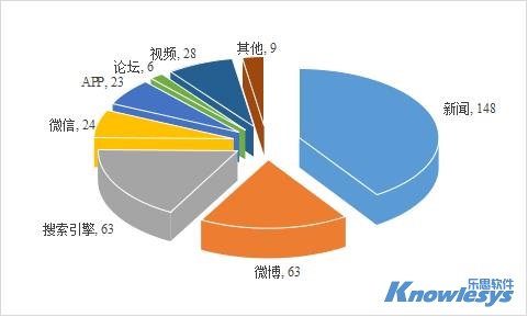 樂思軟件輿情監測數據顯示,截止目前此次輿情采集來源媒體構成類型中,排在采集來源榜前三位的是新聞、微博和搜索引擎。新聞作為重要傳播平臺,數據量達到148條,微博和搜索引擎分別為63和63條。