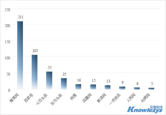 截至目前參與報道的新聞媒體TOP10包括搜狐網、百家號、今日頭條、一點資訊、新浪網、網易、鳳凰網等多家有影響力的網站。其中,排在前三的是搜狐網、百家號和今日頭條,相關信息分別為211條、107條和55條。