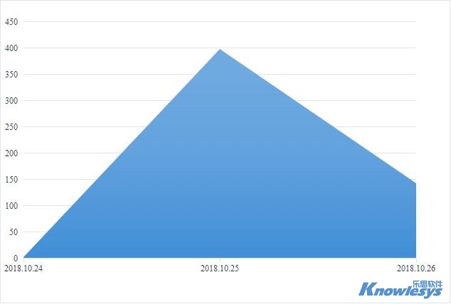 本次事件截至目前整體輿情處于波動下行狀態,輿情整體熱度上升迅速。輿情在10月24日后開始相關媒體報道數量不斷升高,在10月25日相關媒體報道信息數量超過300篇,隨后輿情開始緩慢下降。