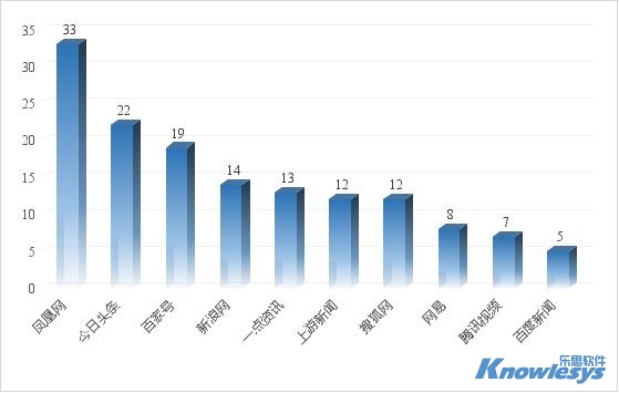 截至目前參與報道的新聞媒體TOP10包括鳳凰網、今日頭條、百家號、搜狐網、騰訊網、新浪網、一點資訊、網易等多家有影響力的網站。其中,排在前三的是鳳凰網、今日頭條和百家號,相關信息分別為33條、22條和19條。