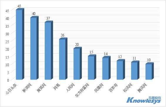 截至目前參與報道的新聞媒體TOP10包括今日頭條、新浪網、搜狐網、網易、人民網、百家號、鳳凰網、騰訊網等多家有影響力的網站。其中,排在前三的是今日頭條、新浪網和搜狐網,相關信息分別為45條、40條和37條。