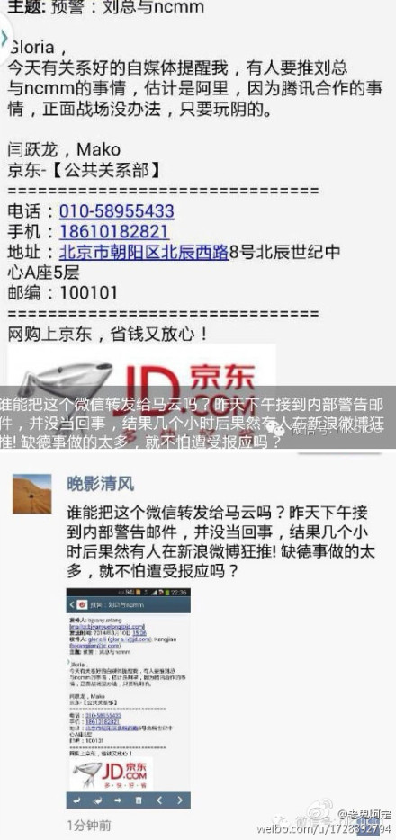 10日,奶茶妹妹被曝與京東老總劉強東秘戀,網曝兩人在哥倫比亞大學相識相戀。11日,劉強東在個人賬號回應緋聞,指責阿里巴巴玩陰的:“今天有關系好的自媒體提醒我,有人要推劉總與ncmm的事,估計是阿里,因為騰訊合作的事,正面戰沒辦法,只要(有)玩陰的。結果幾個小時后果然有人在新浪微博狂推!缺德事做太多,就不怕遭受報應嗎?”