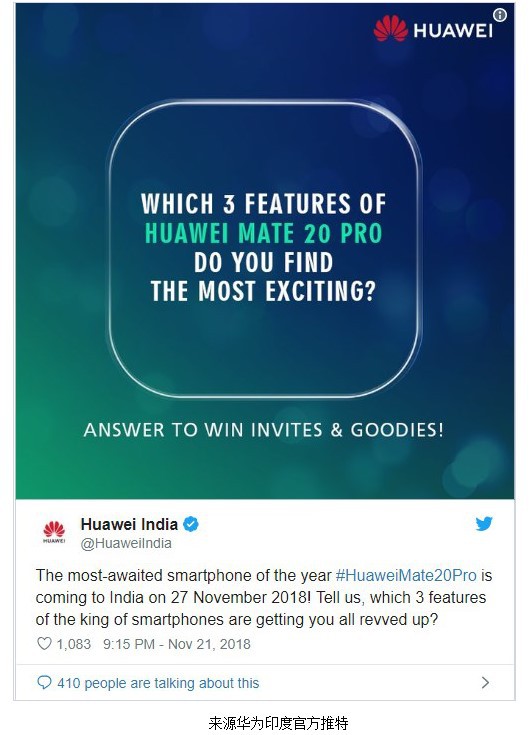 事實上,對華為手機而言,印度市場早已被其列為不可割舍的一級市場。在發布Mate 20 Pro時,華為消費者業務集團高級產品營銷總監沃利·楊(Wally Yang)發言稱,“華為制定的全球策略是要在今年年底以前實現2億部智能機全球出貨量目標,印度市場不可或缺。”