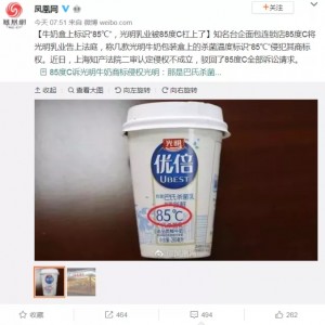 12月19日,樂思輿情監(jiān)測系統(tǒng) 監(jiān)測到新浪微博官方認證號@鳳凰網 發(fā)布的與光明乳業(yè)、85度C相關的重點輿情。