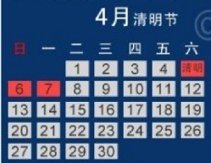 根據國務院辦公廳通知精神,2014年清明節放假安排如下:4月5日(星期六,清明節)放假,4月7日(星期一)補休。
