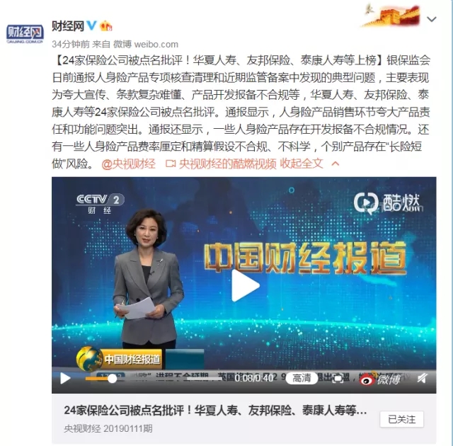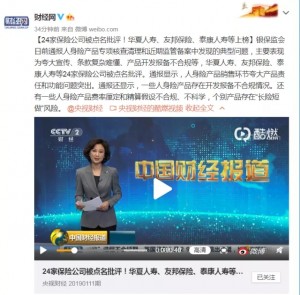 銀保監會日前通報人身險產品專項核查清理和近期監管備案中發現的典型問題,主要表現為夸大宣傳、條款復雜難懂、產品開發報備不合規等,華夏人壽、友邦保險、泰康人壽等24家保險公司被點名批評。通報顯示,人身險產品銷售環節夸大產品責任和功能問題突出。通報還顯示,一些人身險產品存在開發報備不合規情況。還有一些人身險產品費率厘定和精算假設不合規、不科學,個別產品存在“長險短做”風險。