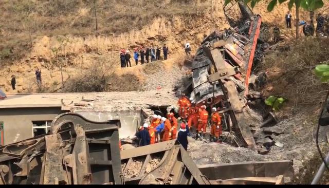 現(xiàn)場救援人員介紹,救援于事發(fā)后隨即展開,截至11日下午14時(shí)30分已連續(xù)救援近17小時(shí),吊車不斷將車廂吊離,失蹤人員所處的位置可能在車頭下面,但車頭被卡在房屋和山坡之間,作業(yè)空間有限,給救援工作帶來困難。