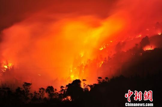 記者在現(xiàn)場看到,在西昌市經(jīng)久鄉(xiāng)馬鞍村山上出現(xiàn)幾條火線,樹木被燒得劈啪作響,熱浪襲人。火借風勢迅速蔓延,過后留下的只是一片焦黑。由于現(xiàn)場風大,達到每秒5米,火勢迅猛,風一吹,形成樹冠火,火焰騰起數(shù)米高,讓夜色中的天空一片火紅。濃煙飄向西昌城。