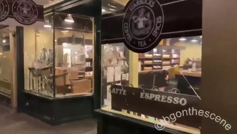 西雅圖黑衣示威者穿過市中心,沿途破壞當?shù)氐膩嗰R遜商店及法院,位于派克市場(Pike Place Market)的星巴克創(chuàng)始店窗戶被砸,之后警民沖突導(dǎo)致至少一人被捕。