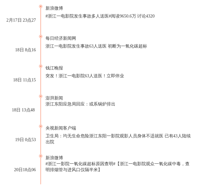 根據監測信息顯示,2021年2月17日,微博用戶@漩渦視頻在新浪微博、西瓜視頻、騰訊視頻等平臺發布相關視頻信息。視頻顯示,浙江省東陽市巍山鎮一影廳出現群眾懷抱他人奔走、巍山中心衛生院工作人員開展救治工作的畫面,并表示疑似一氧化碳中毒。
