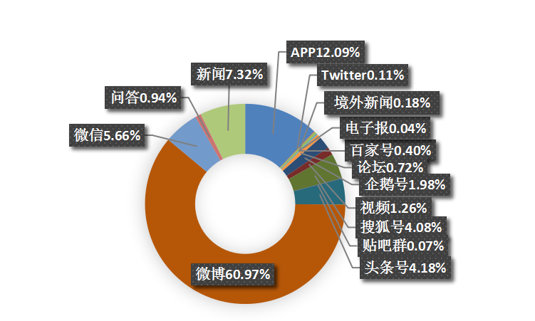 從傳播走勢中的媒體分布來看,前期微博的傳播趨勢與全網趨勢基本一致,20日前后網媒聲量繼續維持,使得全網聲量出現小幅上升。