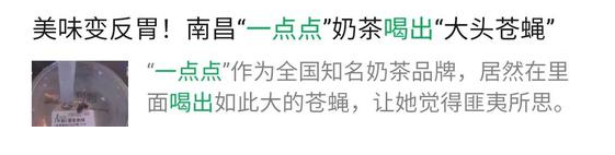 近日有網友爆出其于1點點店內購買的奶茶中,吃到一厘米長的黑色蟲子,當場嘔吐不止。