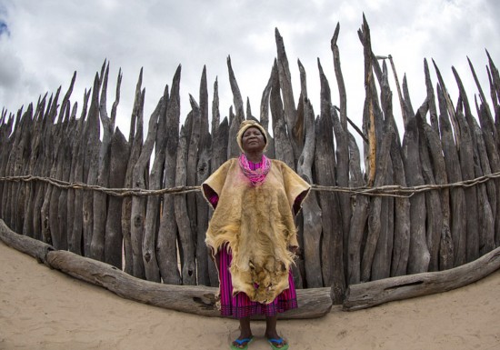 作為非洲納米比亞國最后一位部落君主,身著一身亮粉色條紋裙子、佩戴熒光貝殼的珠串項鏈以及一襲閃光的獅皮長袍的Meekulu?Mwadinohmo?看起來特別“有范”。據英國《每日郵報》?3月24日報道,攝影師埃里克·拉福格(EricLafforgue)在女王Meekulu?Mwadinohmo的授權下,有幸一睹她所在的Okwanyama部落?,并深入了解該部落的皇家宮殿。