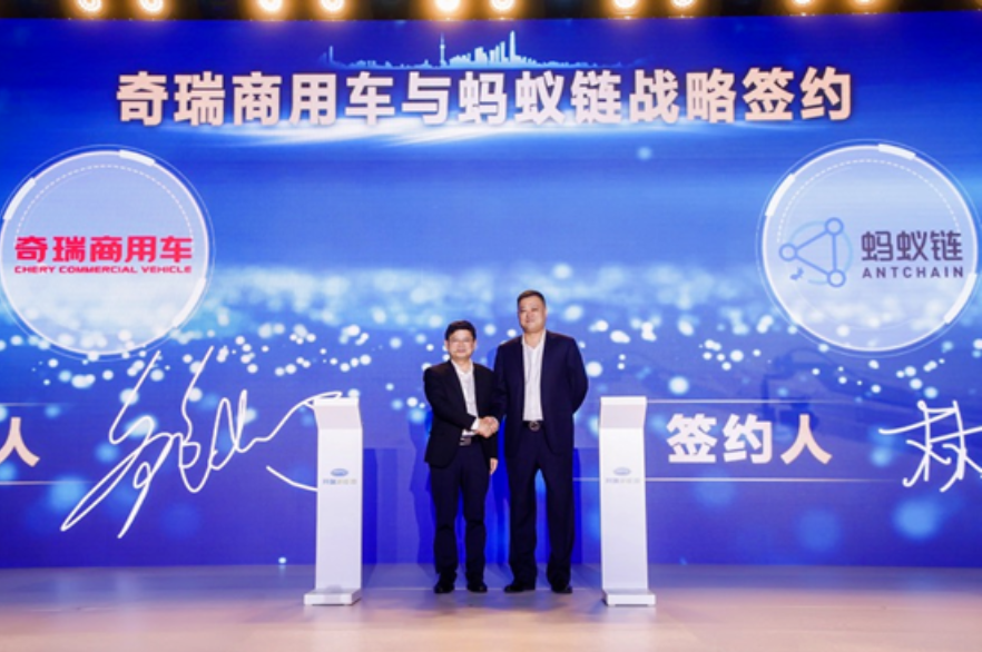 5月6日,螞蟻鏈與奇瑞商用車在成都簽署戰(zhàn)略合作協(xié)議,雙方將推動區(qū)塊鏈、物聯(lián)網(wǎng)等技術(shù)在奇瑞商用車中的應(yīng)用。