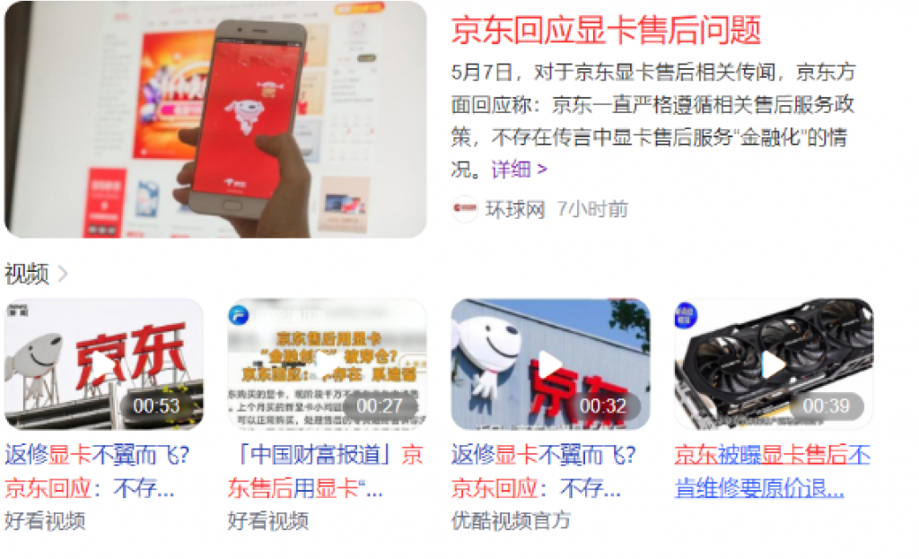 ?樂思網絡輿情監測發現,近期,在微博和黑貓投訴平臺上,出現用戶投訴顯卡商家投訴京東售后服務的內容:如果你早前在京東購買了顯卡,出現問題后申請售后,卻被京東售后告知無法維修、無法換貨、要求原價退款。同時,也有用戶稱自己高價買入的顯卡,使用痕跡明顯,疑似二手卡。引起不少網友的關注和媒體的報導。