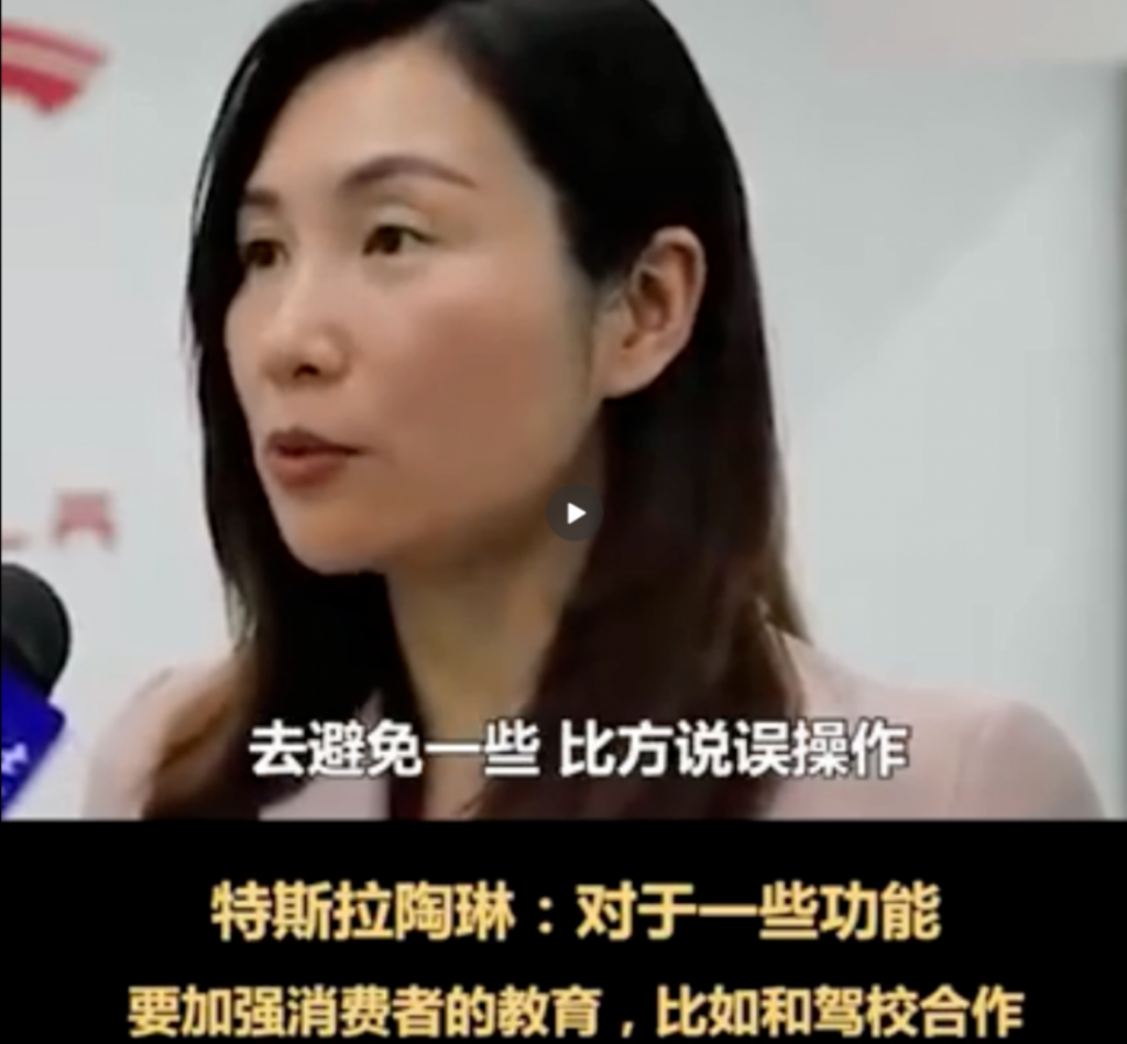就在視頻發布的同一天,特斯拉副總裁陶琳在接受媒體采訪時表示:要加強車主教育,避免誤操作。