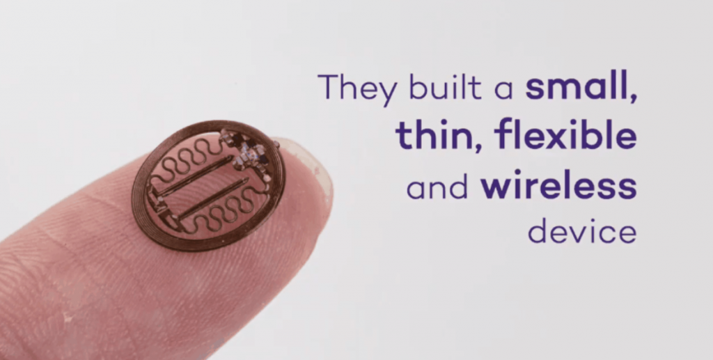 為實現(xiàn)小鼠社交實時控制,科學家們設計了下圖這款厚度僅有半毫米的、小而薄的無線神器,研究人員將其作為植入物置于小鼠頭骨位置。