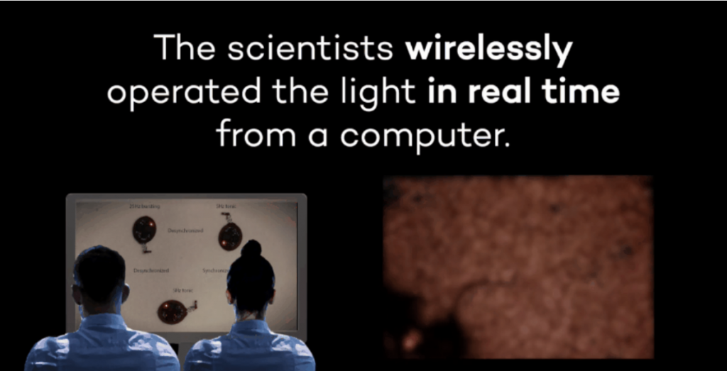 具體來講,植入物與一種尖端有 led 的絲狀微型探針相連,led 將會與小鼠大腦的中央執(zhí)行區(qū)同步,而這一區(qū)域負責反饋大腦獎賞信息。