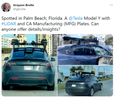 近日,關于特斯拉的新聞又讓大家圍觀了起來。視聽行業顧問格雷森·布魯特(Grayson Brulte)在推特上發布了特斯拉Model Y 的照片,有人指出這輛車的車頂裝上了激光雷達傳感器。