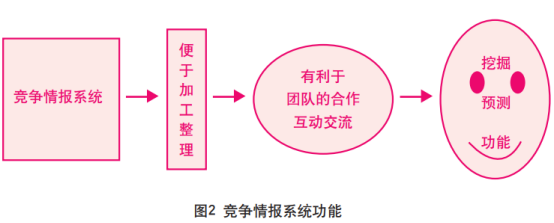 國內競爭情報軟件提供商在艱苦地為生存而戰,我想很重要的一個方面是缺少智能化的思想,希望能夠建一個大而全的系統來完全取代人的思維活動,使競爭情報工作自動化程度更高,這種想法是不現實的。應該說作為一名競爭情報從業人員的專業化程度是很高的,每個人所能監測的領域范圍是有限的。企業真正的情報工作應該是由一個團隊來完成的,需要多方合作,這也是國內所缺少的團隊合作精神。當然我也知道現在國內有在這方面做得非常好的企業。競爭情報系統實際上應該是一種有利于團隊共同來完成企業競爭情報的系統。它應該是企業的發展戰略系統,如圖2。