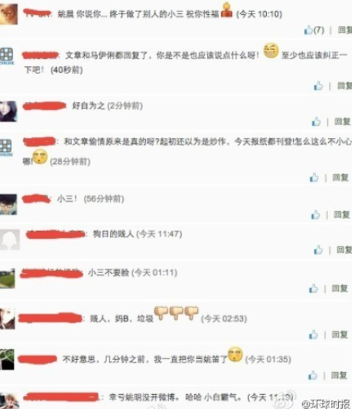 想知道大家對文章馬伊琍婚變新聞的威力嗎?看看姚晨的微博就知道了。據稱,圍觀的群眾和粉絲已經不滿足到姚笛的微博去聲討罵娘了。于是,連八竿子打不著的大嘴姚晨也無辜躺槍。這是有多壯觀?難道這就是傳說中的誤傷?對此,有網友調侃稱,“姓啥子不好,非要姓姚,姚明最近也還是低調點吧!”