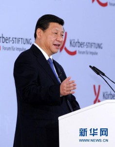 當地時間3月28日下午,國家主席習近平應德國科爾伯基金會邀請,在柏林發表重要演講,闡述中國和平發展道路和獨立自主的和平外交政策,強調中國走和平發展道路是中華民族熱愛和平的文化傳統的繼承和發揚,是中國人民從自身經歷中形成的自覺選擇,是思想自信和實踐自覺的有機統一。中國將堅定不移走和平發展道路,也真誠希望世界各國都走和平發展道路。