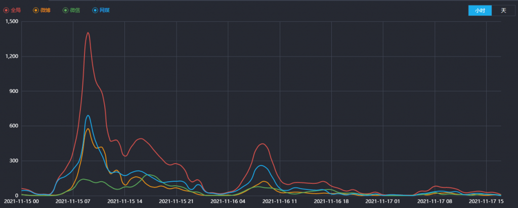 從網絡輿情數據走勢來看,開市當日,輿情聲量最高,共計1,404篇,主要集中在微博和王梅平臺,分別有577和692篇。