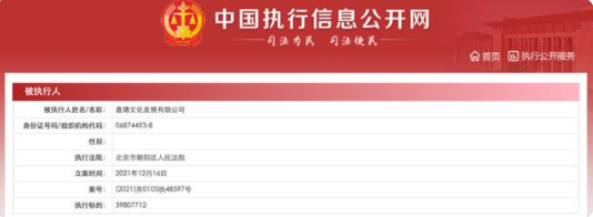 中國執(zhí)行信息公開網(wǎng)顯示,12月16日,嘉博文化發(fā)展有限公司新增一條被執(zhí)行人信息,執(zhí)行標的3980萬余元,執(zhí)行法院為北京市朝陽區(qū)人民法院。股東信息顯示,該公司股東包括宋憲強、許晴、陳建斌、蔣勤勤等人。其中,許晴持股約2%,陳建斌持股約1%,蔣勤勤持股約0.5%。