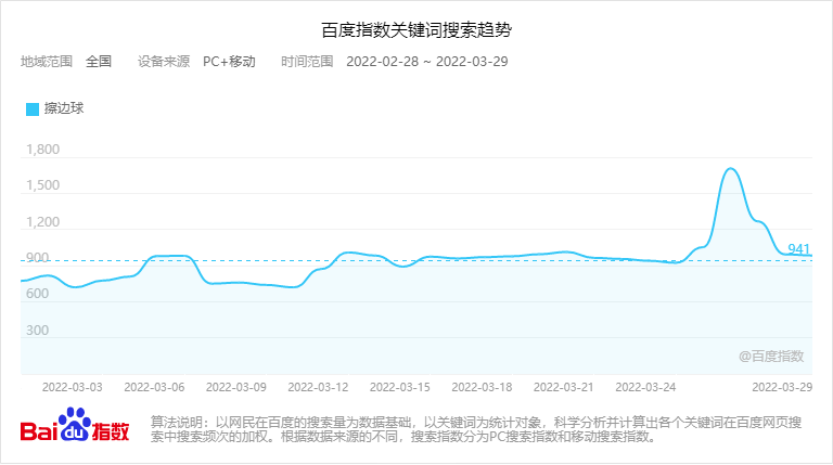 3月26日,“擦邊球”一次的搜索指數更是沖上新高,到達近30天內最高值。