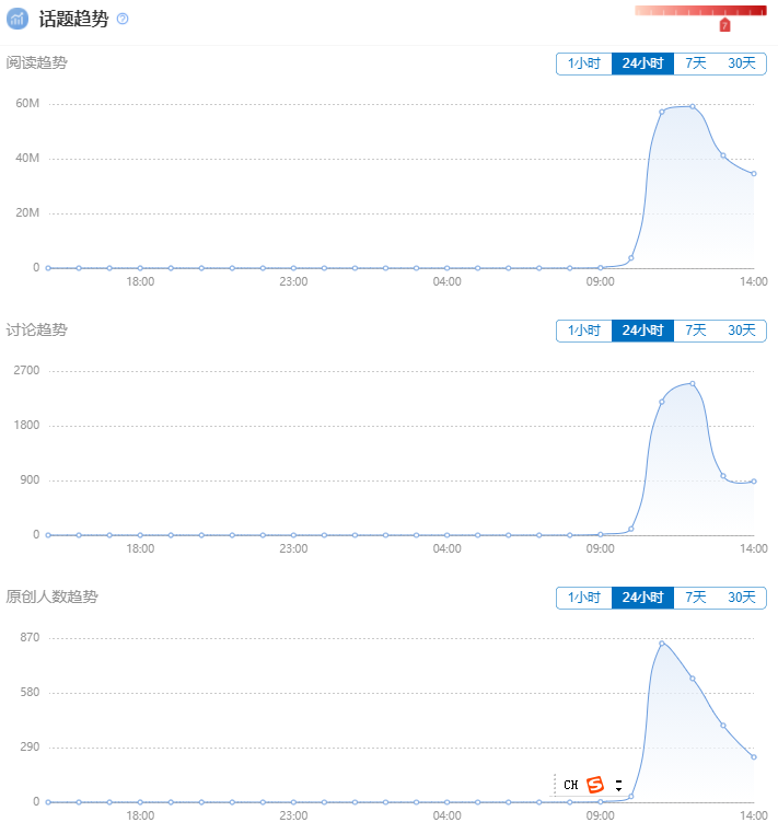 無(wú)論是話題熱度趨勢(shì)、討論趨勢(shì)還是原創(chuàng)信息來(lái)看,在上午11點(diǎn)左右開始輿情熱度到達(dá)傳播高峰,在下午一點(diǎn)左右開始出現(xiàn)明顯的下降趨勢(shì),截至目前仍保持下降趨勢(shì)。