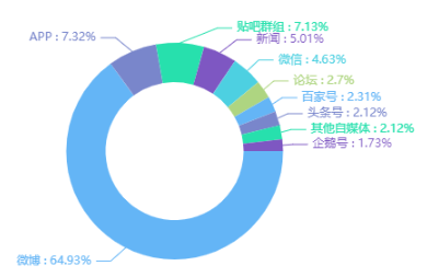 從此次輿情事件的媒體分布來看,微博無疑成為事件傳播的“主戰(zhàn)場”占比高達64.93%,因此,對于涉事企業(yè)來說,其次,APP和貼吧群組的占比相對較高,穩(wěn)定微博平臺及貼吧群組類似發(fā)聲門檻低傳播平臺的傳播擴散在很大程度上能掌握輿情傳播的局勢。