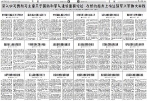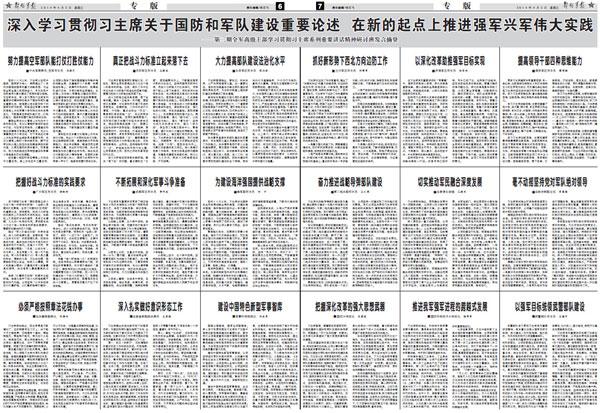 4月2日出版的解放軍報(bào)以整版篇幅,刊登各大軍種、軍區(qū)大員署名文章,多角度闡述中國(guó)夢(mèng)、強(qiáng)軍夢(mèng),支持習(xí)主席指示。?專家表示,這是改革開放35年來(lái)僅見的軍方大規(guī)模集體表態(tài)。