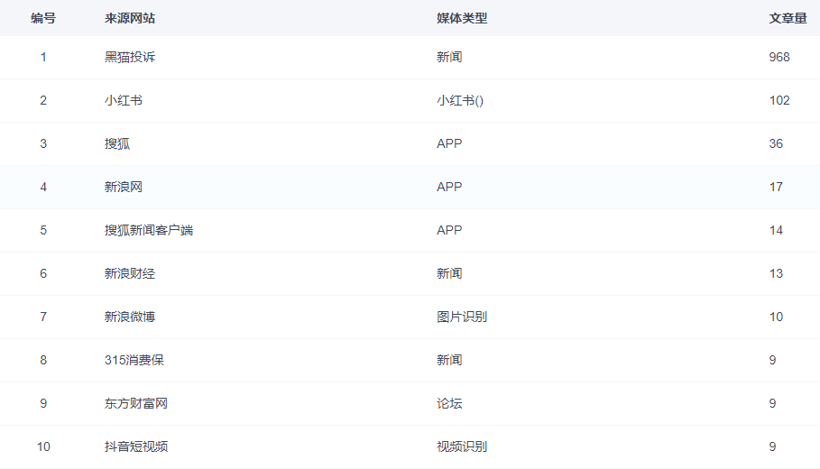 從來源網站來看,新聞平臺主要是新浪網的黑貓投訴平臺。