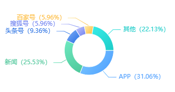整體上,APP占比最大,約為31.06%,新聞排在第二,約為25.53%;其次是其他平臺,約為22.13%。