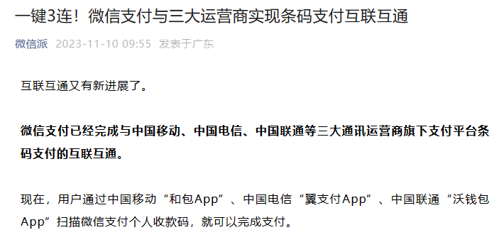 樂思行業輿情:雙十一收官前夕,微信支付一鍵3連與三大運營商實現條碼支付互聯互通